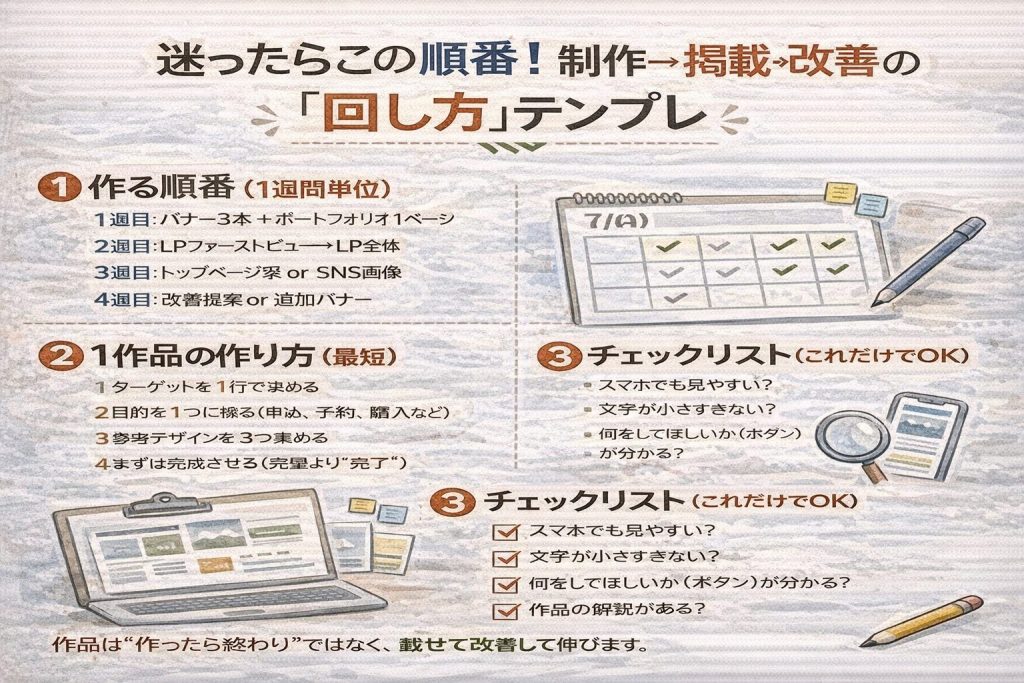 迷ったらこの順番!制作→掲載→改善の“回し方”テンプレ